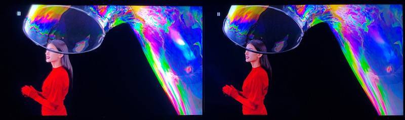 左索尼X95EK 右TCL X11,可以看出来索尼X95EK使用了广视角技术,而TCL X11在大角度的情况下颜色开始比较明显的丢失