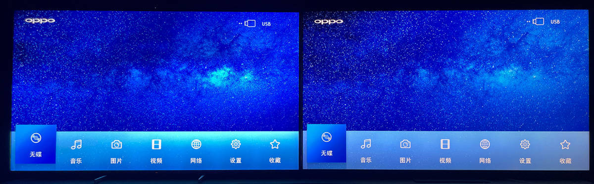 左索尼X95EK 右TCL X11,在OPPO待机画面中,星星的数量都一样,但是星云的层次和亮度都是X95EK表现的更多一些