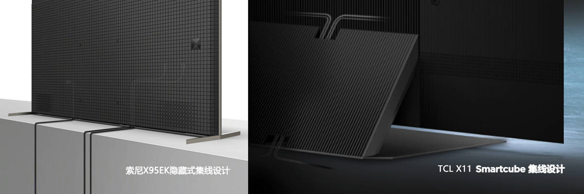 索尼X95EK采用活动盖板来完成全隐藏式的集线设计,TCL X11有部分线还是裸露出来