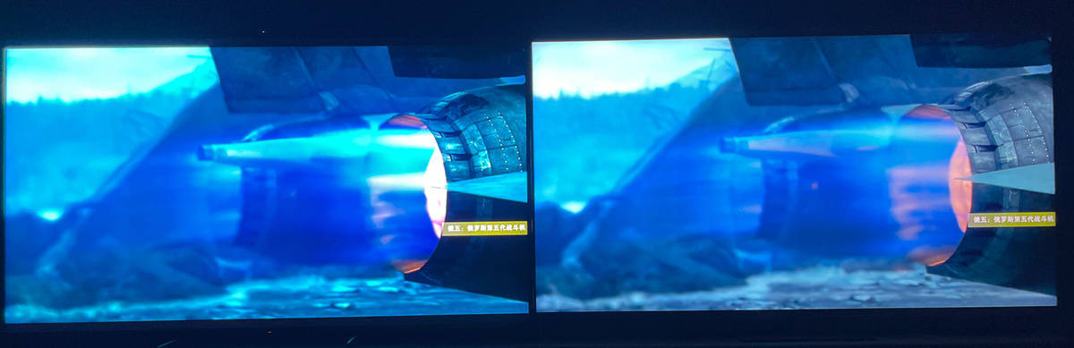 左索尼X95EK 右TCL X11,飞机发动机尾部高光的热量感在X95EK上表现的更优秀