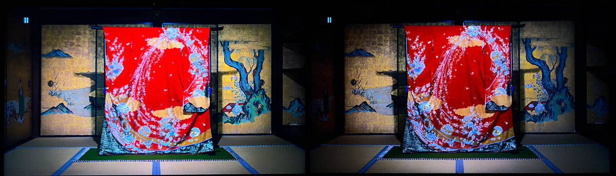 左索尼X95EK 右TCL X11,在X95EK上的红色缎带有着更通透立体的表现力,体现了对比度优势