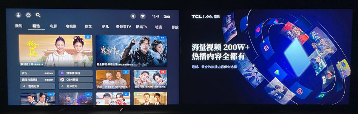左索尼X95EK 右TCL X11,这张是电影模式,两台电视差异不大,但是索尼的画面中可以看到人物衣服的纹理更清晰色彩更饱满一些,但没有鲜艳模式那么拉开差异