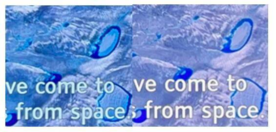 左索尼X95EK 右TCL X11,上图为长曝光后的光晕区域示意图,对于不敏感人群可能看不出来画面中有光晕的存在