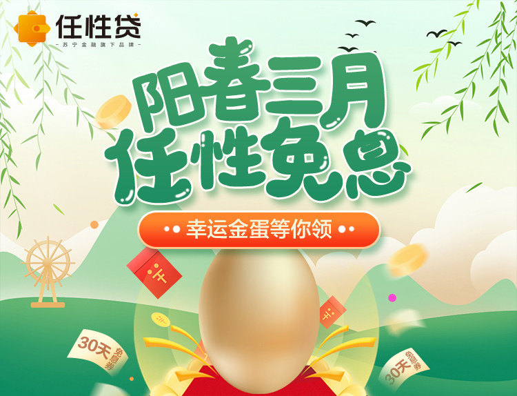 一年之计始于春,你的新年flag都立好了吗?天气转暖,万物复苏,当然少不了各种“焕新”计划,“钱包”又要蠢蠢欲动了。苏宁任性贷为你加持,送上“任性免息”福利,幸运金蛋等你领,赢最高30天免息,开启全新美好生活。