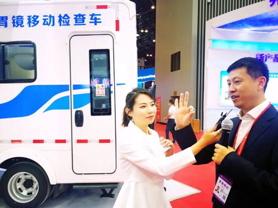 在晋阳湖国际会展中心湖北馆内现场,一辆蓝白相间、房车形状的“磁控胶囊胃镜移动检查车”引来现场观众和各路媒体的“闪光”围观。