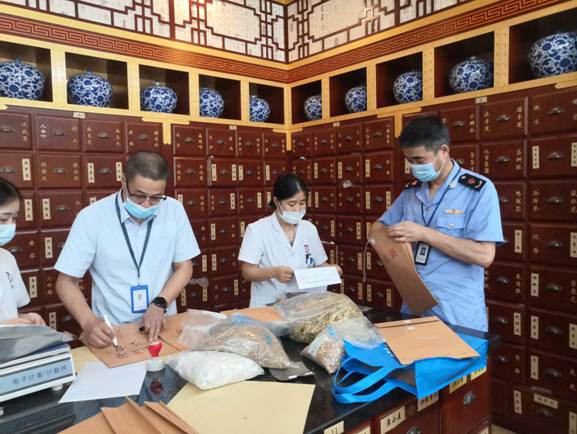 “您好,我们要对这12味中药饮片以及相关资料进行现场检查,请提供”。日前,区医保局联合区市场监管局对首南街道某家中医门诊部进行检查,主要对天麻、五加皮、浙贝母等使用频率高、容易出现质量问题的中药饮片进行抽检。这是定点医药机构中药饮片专项治理行动的一幕。