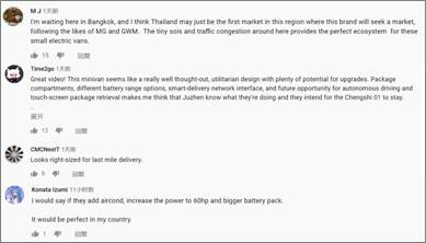 Time2go:Great video! This minivan seems like a really well thought-out, utilitarian design with plenty of potential for upgrades. Package compartments, different battery range options, smart-delivery network interface, and future opportunity for autonomous driving and touch-screen package retrieval makes me think that Juzhen know what they''re doing and they intend for the Chengshi 01 to stay.这款小型货车似乎是经过深思熟虑的实用设计,具有很大的升级潜力。 包裹隔间、不同的电池续航里程选项、智能投递网络接口,以及未来自动驾驶和触摸屏包裹检索的机会,让我觉得“矩阵”(指矩阵数据科技)知道他们在做什么,他们打算让橙仕01留下来。