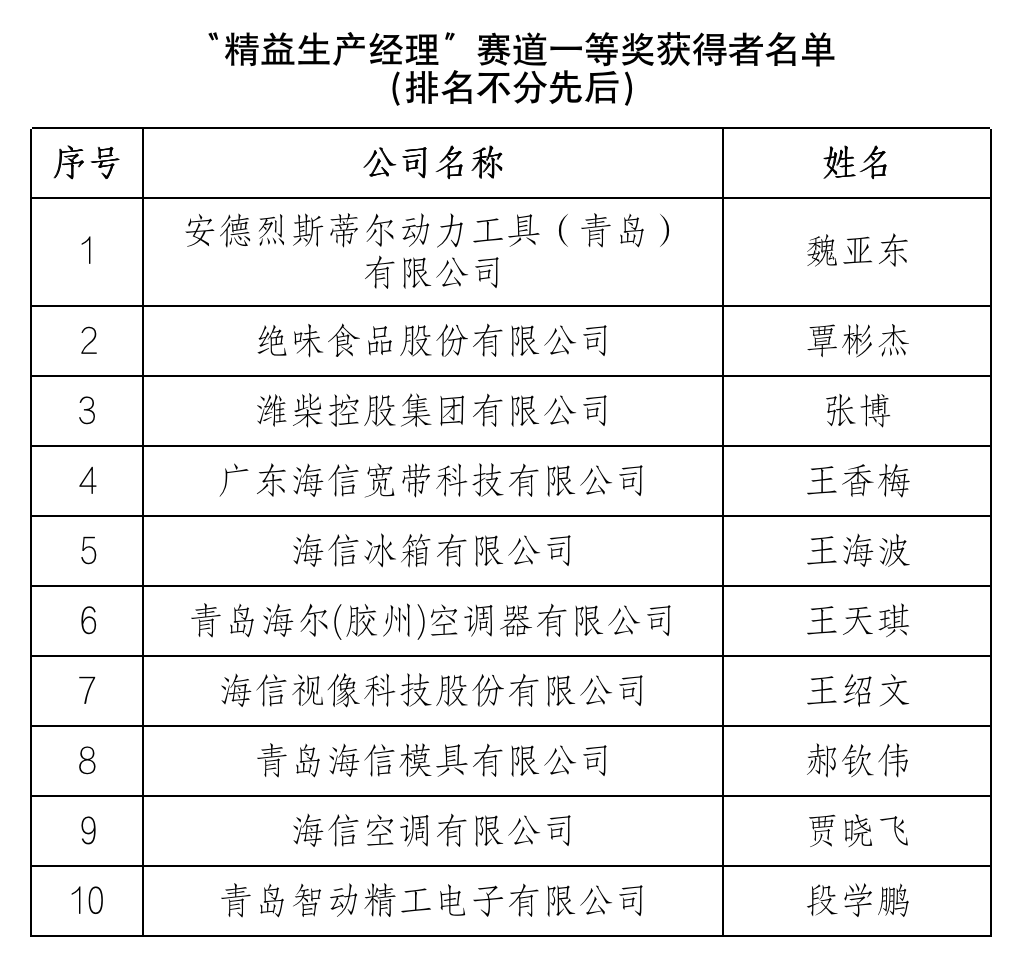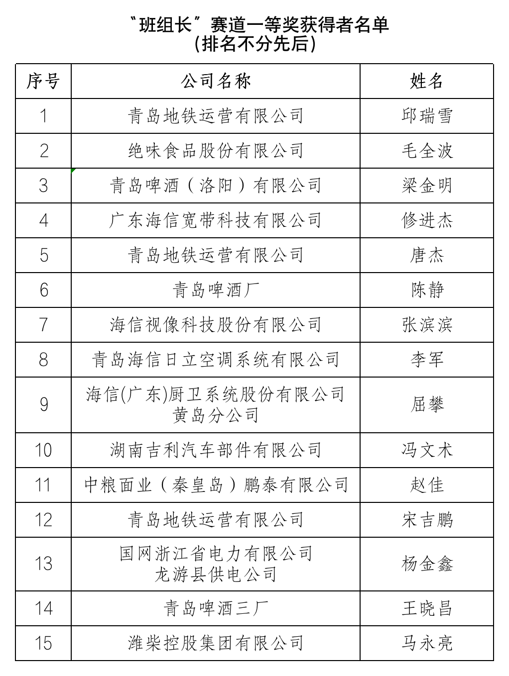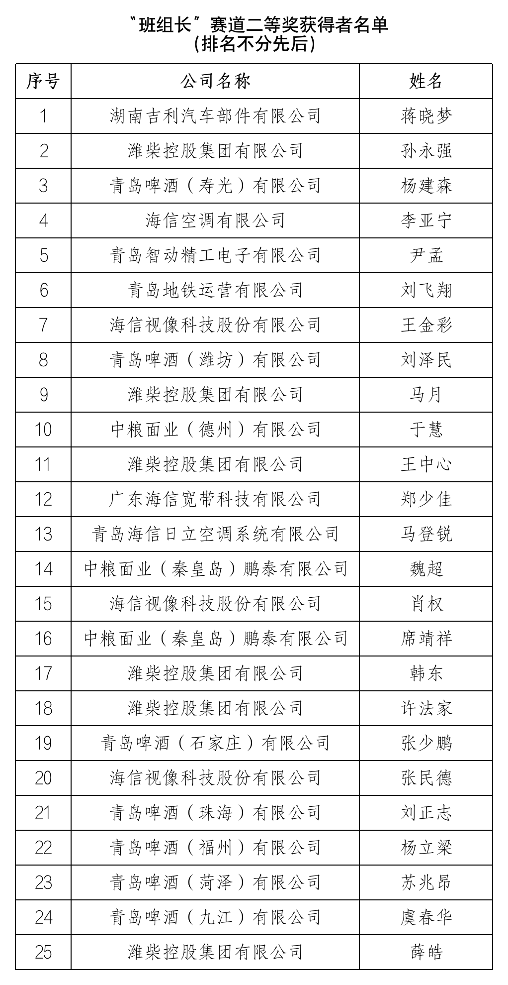 首届高科技企业班组长&精益生产经理管理技能大赛获奖名单