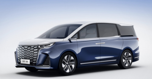 RF-M则定位中大型MPV,主打中高端家用与商务市场,从造型设计到功能配置尽显智能风范。它采用国风设计理念,通过鳞片状的点阵格栅、贯穿式大灯、悬浮车顶、侧面双腰线设计展现出浓厚的科技未来感。RF-M全面采用电驱化动力系统,未来量产支持可油可电双模动力,并加入中控3D投影互动、AR HUD等功能,搭载支持智能调整的全座舱零重力座椅,实现亲情互动和商务出行两大场景的切换自如。