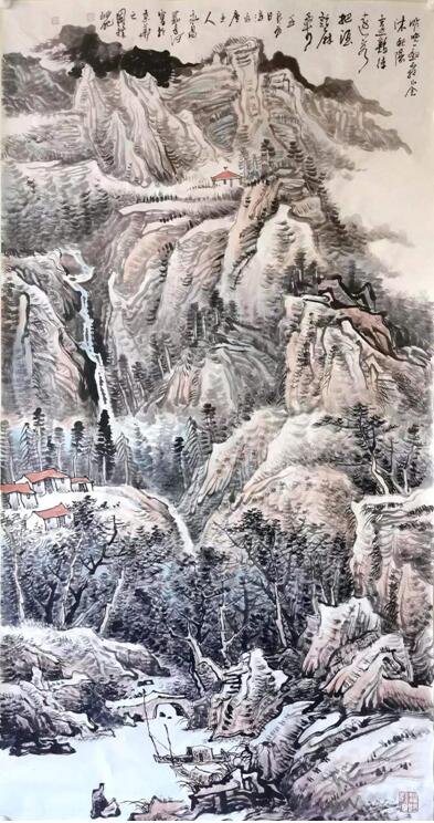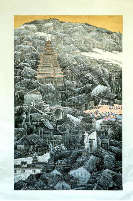 中国画《苗寨云起图》获中美协举办的“第四届八荒通神-哈尔