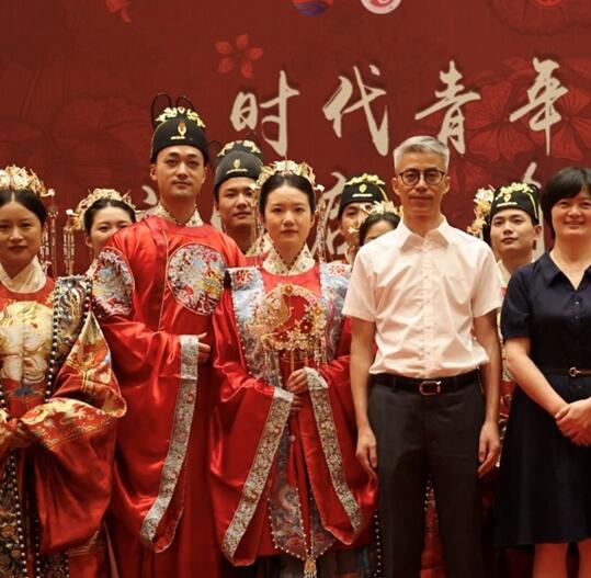 南通市委组织部、市委宣传部、团市委有关领导、启东市委组织部、市委宣传部主要领导、启东市文明办、市网信办、市民政局、市总工会、团市委、市妇联、江海澜湾旅游度假区主要负责人以及启唐城相关领导和婚礼新人的亲朋好友们共同出席本次婚礼,在唐风唐韵的大唐复刻盛景中,共彰中国传统文化魅力,共同见证新人幸福甜蜜的重要时刻。启东市委宣传部副部长、市新闻出版局局长张建昌表示,集体婚礼的筹办不仅是移风易俗的具体实践,更饱含了市委、市政府浓厚的爱才之心、引才之情和留才之意。希望更多优秀青年“因为一座城、结识一个人、安下一个家”,实现青年与城市发展的双向奔赴。