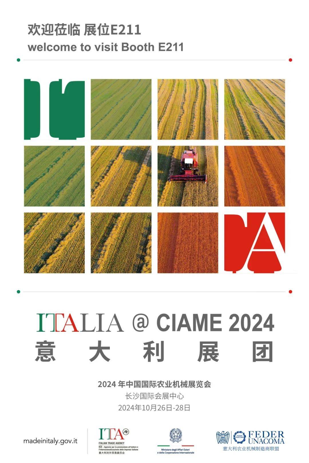 2024 中国国际农业机械展览会(China International Agricultural Machinery Exhibition:Short in CIAME)将于 2024 年 10 月 26 日-28 日首次在⻓沙国际会展中心举办,意大利农业机械亮相在中国重要行业展会。