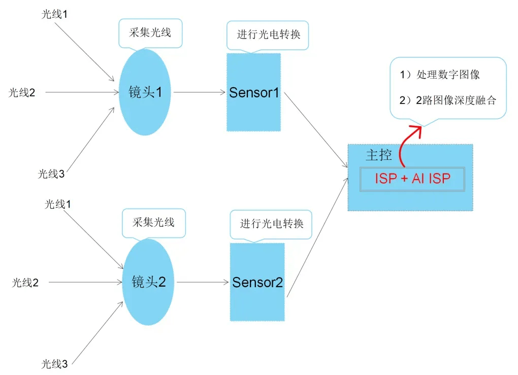 既不开灯也想整夜全彩监控?双摄采用2个镜头,2个Sensor捕捉更充分的光线并且同时进行光电转换,将两路通道光电转换后的图像再次经过深度融合形成最终图像。这种方式既通过算力弥补了夜晚单Sensor可见光捕捉不足的劣势,又通过多路通道的图像融合增加图像质感,1+1>1.8,是实现夜晚全彩的技术演进方向。