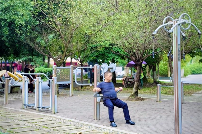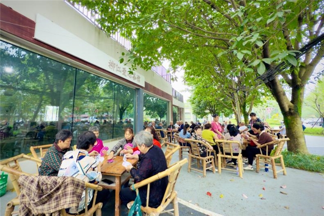 “时光游园”距彭镇老街仅200米,既方便周边居民日常出行,也为到老街游玩的市民提供了亲近自然、品味茶韵的休闲空间。