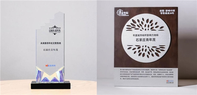 凭借创新性发展理念和前瞻性项目规划,石家庄青年茂已收获行业重磅认可——先后荣膺2024中国非标商业共创峰会“未来新青年社交聚集地”大奖及2025中国商业地产节“年度城市标杆影响力地标”大奖,成为石家庄商业升级的创新典范。