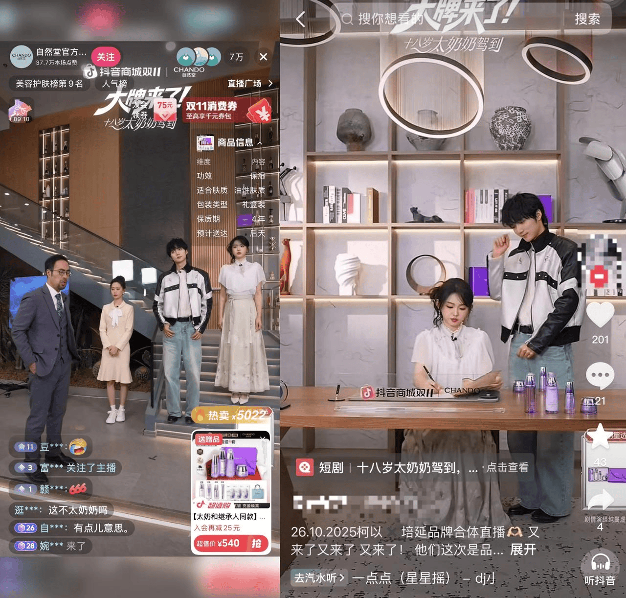 联手最强IP《18岁太奶》打造电商 × 短剧新模式,抖音双11直播间把剧粉变成品牌自己人