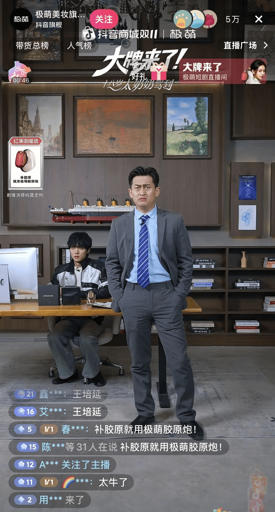 官方合作来得比我的追剧速度还快。上午刚刷完太奶奶的家族商战和纪家男模的情感纠葛,晚上抖音商城「大牌来了」直接给我端上来一盘“沉浸式互动直播”的细糠——