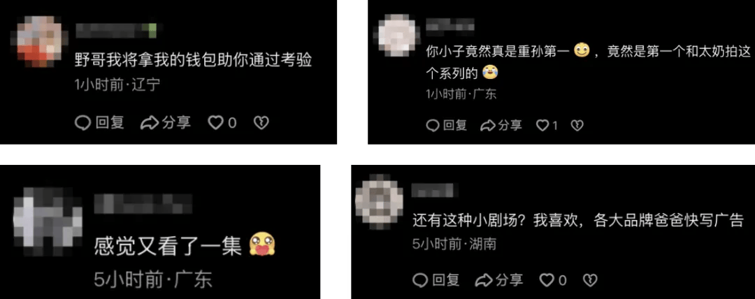 最后,品牌切片二传直播间精彩内容,用户也开始自发晒出好内容、晒出《太奶奶》同款。直播高光切片、《太奶奶3》名场面复刻、剧中同款测评……这些内容再形成了一波持久的内容长尾。剧粉们跨平台讨论直播中的亮点瞬间、分享两位主演的精彩互动、接受来自太奶奶和野哥的激情安利。这种“自来水”式的传播,不仅让品牌内容随粉丝讨论拓展到小红书、微博全域,更延长了活动的影响力周期,为品牌沉淀下极具传播潜力的内容资产。