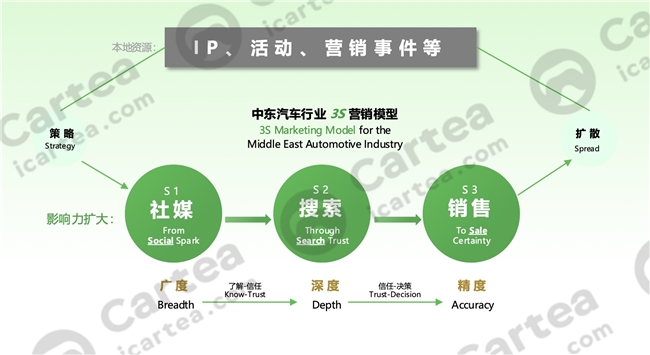 Cartea提出的3S营销模型,以“社媒激发(Social Spark)—搜索验证(Search Trust)—销售转化(Sale Certainty)”为核心逻辑,全面匹配中东用户的消费路径。