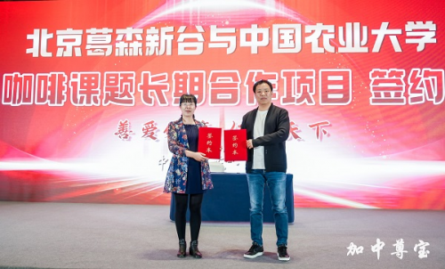 加中尊宝与中国农大签约合作 左:农大刘萍教授 右:加中尊宝董事长李晓飞