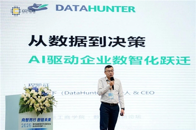 紧接着,数猎天下创始人程凯征先生以《从数据到决策:AI驱动企业数智化跃迁》为主题,为现场企业带来了一次深度认知升级的分享。他指出,许多企业虽然经历了数字化建设,但依然面临“数据丰富、洞察贫乏”的困境,问题核心在于:企业能“看见数据”,却无法“理解数据”。