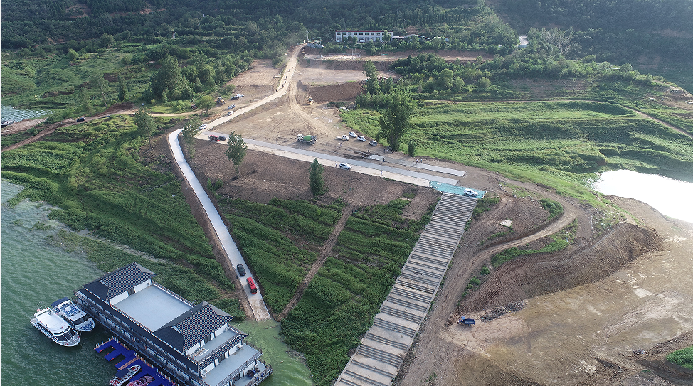 经过项目建设者共同努力,如今,9座码头依次在库区沿岸“绽放”。这9座码头分别位于库区核心游览区及渔民聚居区,每座码头都配备了完善的停靠泊位、系船设施、照明系统,部分码头还增设了游客休息亭、和避风港池,真正实现了“功能全、便民化”。从空中俯瞰,这些码头沿库区岸线合理分布,恰似镶嵌在黄河之上的9颗璀璨星辰,照亮了沿岸群众的生活之路。