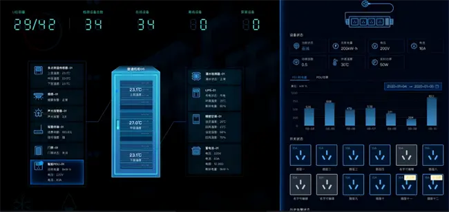 在机房,用户部署了信锐基础设施物理安全感知解决方案,IPSIP平台对接用户原有平台,对数据中心机房动力系统、环境系统、安防系统等提供统一管理解决方案(图三),实现故障及时告警、问题快速定位,保障对机房状态的实时感知和24小时无人值守。