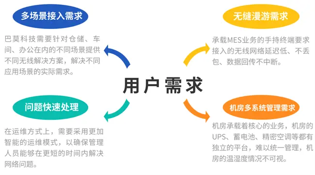 为积极推动工业生产及办公的灵活性升级,成都巴莫科技对网络建设提出了如下需求: