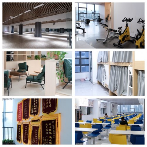 星级酒店式宿舍,每间配备循环离子中央空调、太空舱床铺、静音地胶,下楼出门即达500m全景排练厅。