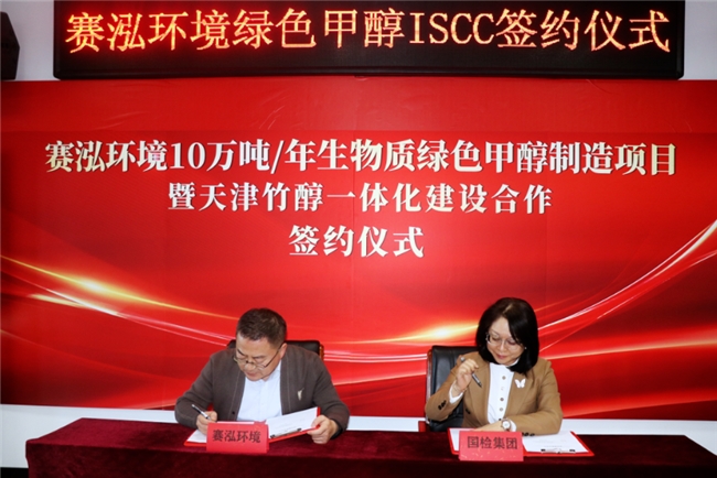 12 月 4 日,中国国检测试控股集团股份有限公司(简称 “国检集团”)与天津市赛泓环境工程有限公司(简称 “赛泓环境”)在天津瑞恒茂集团正式签署 ISCC 绿色甲醇咨询服务战略合作协议,双方将以天津“竹醇负碳一体化项目”为抓手,围绕能源植物多倍体芦竹与绿色甲醇制造可持续减碳、降碳的协同作用,构建符合国际可持续发展与碳认证 (简称“ISCC EU认证”)的市场通道,为 “双碳” 战略落地注入强劲动力。