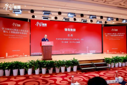 中宣部宣传舆情研究中心党委书记、主任,“学习强国”学习平台总编辑农涛先生在大会进行了致辞。“学习强国”上线六年来,注册用户超3.7亿,日均阅读量达7亿人次,平台正从内容提供者向“内容+学习+服务”的综合平台转型。本次学习强国AI频道的上线是落实“科技自立自强”国家战略的重要实践,助力提升全民数字素养。