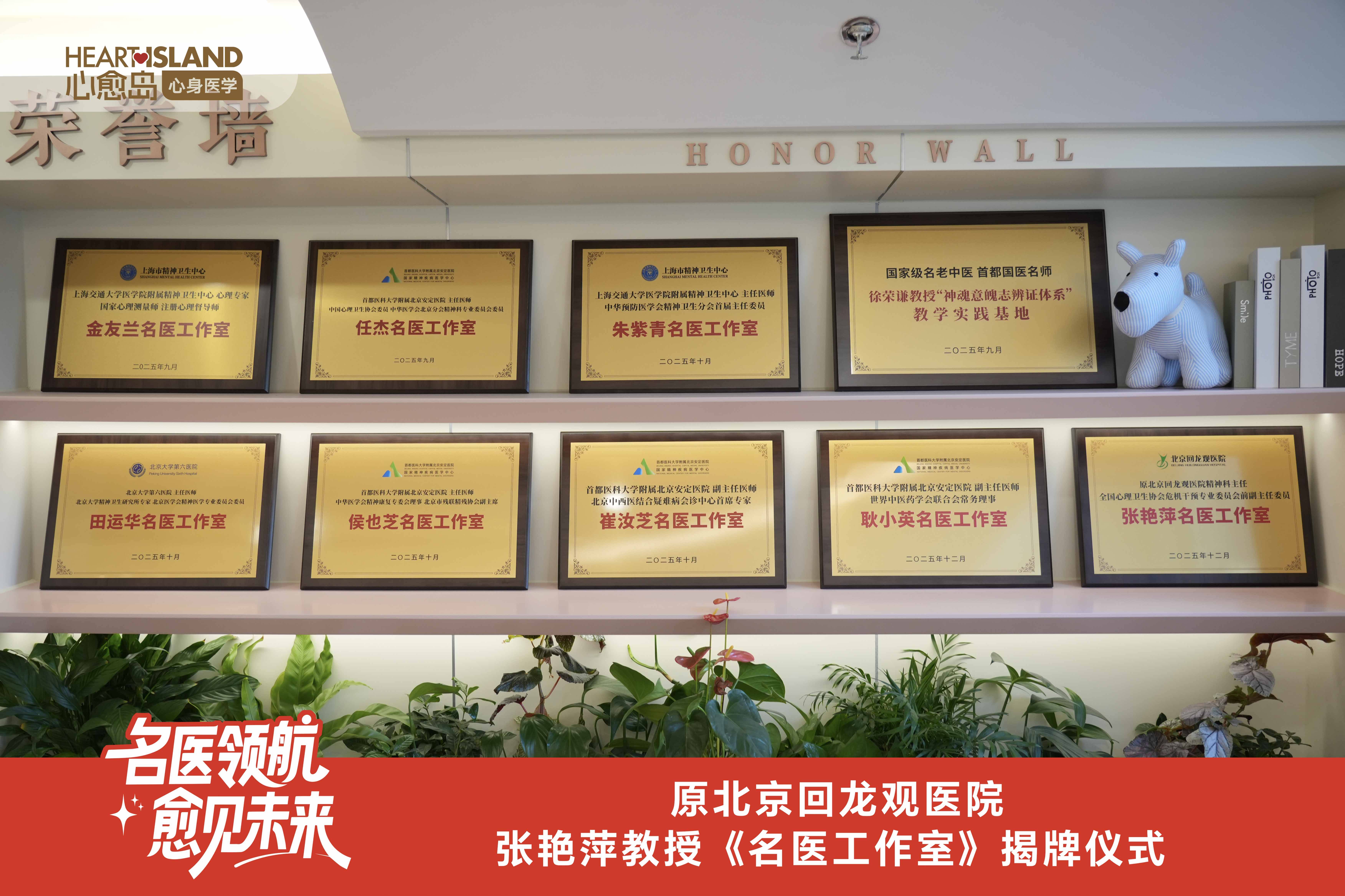 12月28日,原北京回龙观医院张艳萍教授名医工作室在杭州心愈岛心身医学中心正式揭牌成立。此次是心愈岛深化权威专家资源整合、强化核心专业服务能力道路上的又一重要里程碑。