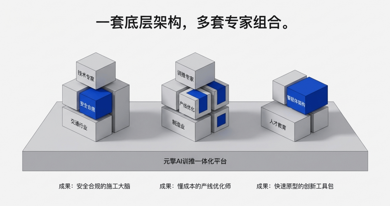 开元云似乎在走第三条路:中间层平台化,前端场景模块化。底层是统一的训练与推理框架,中间是可按需调用的专家模块库,上层是针对不同行业的“场景套件”。