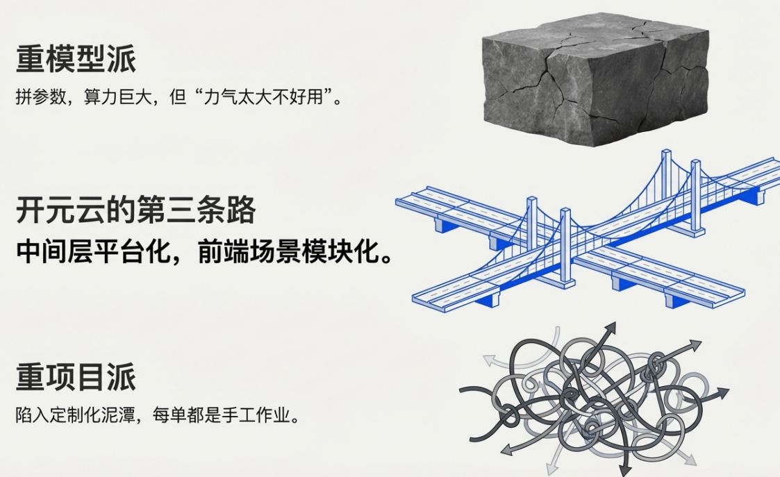 当前不少AI公司陷在两个极端,第一、重模型派:拼命卷参数、刷榜,但落地时发现“力气太大不好用”;第二、重项目派:陷入定制化泥潭,每单都像手工作业。