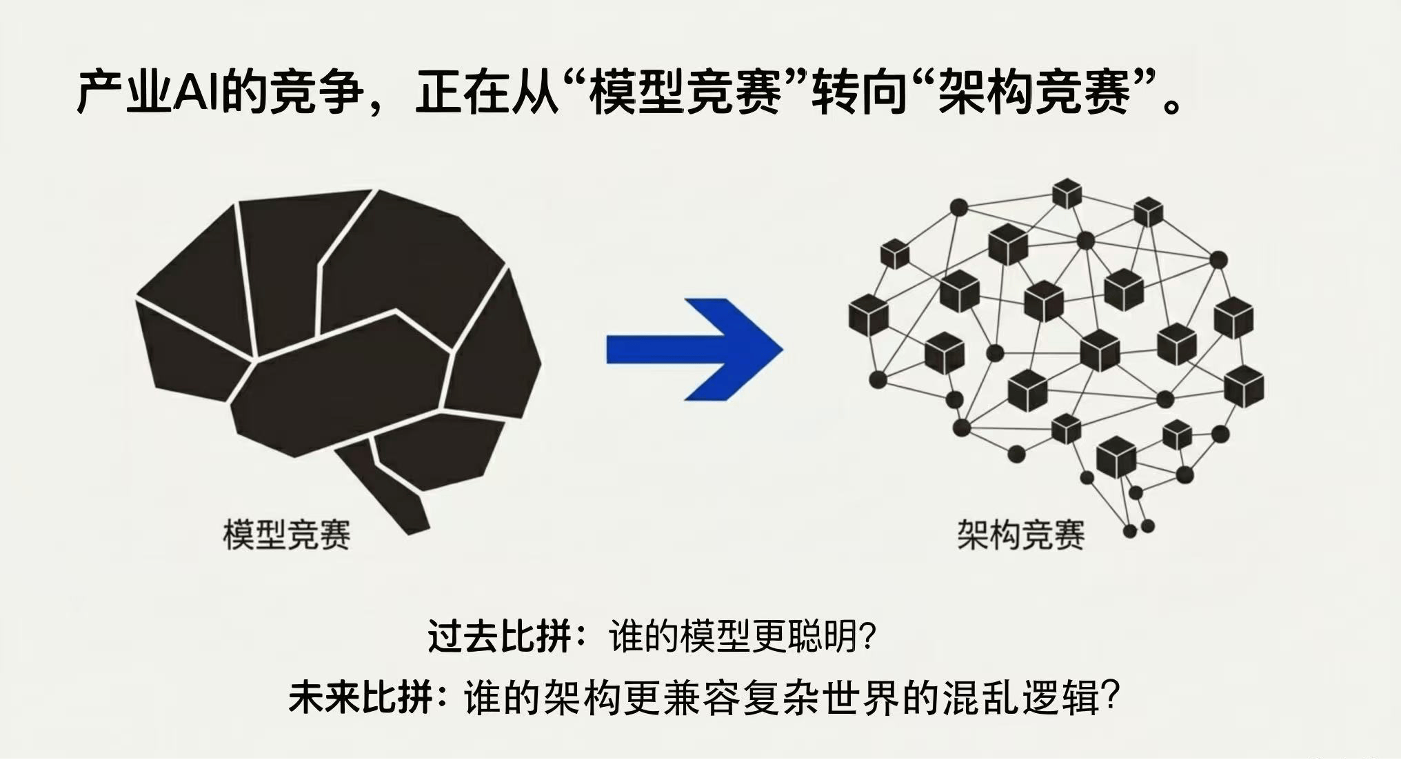 这种多赛道同步验证的现象,可能暗示了一种不可逆转的趋势:产业AI的竞争,正在从“模型竞赛”转向“架构竞赛”。未来比的将不再是谁的模型更聪明,而是谁的架构更能兼容复杂世界的混乱逻辑,即谁更懂细分领域的行业Know-How。