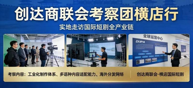近日,深耕产业赋能八年的创达商联会组织专业考察团,赴横店国际短剧联盟有限公司(Hengdian International Short Drama Alliance Co., Ltd.)开展深度调研交流。此次考察由创达商联会主席团统筹、项目考察部执行,汇聚金融投资、产业运营、品牌服务等领域专家及会员企业代表,旨在精准把握微短剧行业发展脉搏,探寻与优质产业平台的合作契机,为商联会会员布局短剧赛道、参与文化出海搭建桥梁。