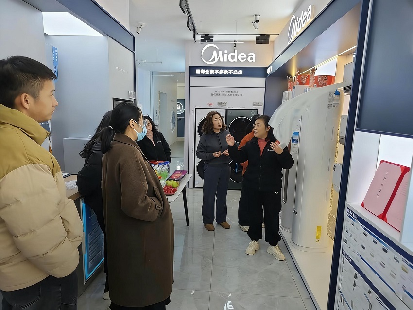 在市区一家美的智慧家门店内,记者看到美的全面风系列的展区前围满了咨询的市民,不少消费者正在咨询其制热的相关功能。门店销售员李姐一边为消费者演示风口调节,一边给记者介绍:“多口家庭是核心客群,他们普遍担心老人孩子吹空调不适、房间升温慢受凉,而美的全面风主打“超强制热性能和自然风体验”解决了这些顾虑。”