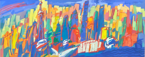 ———《上海陆家嘴印象》油画 145 x 360 cm