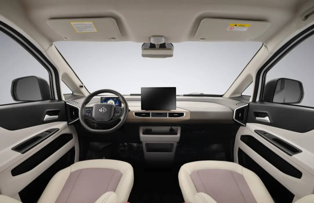 跨越星光的内饰告别传统商用车的简陋印象,向乘用化、智能化靠拢。货运版采用1380mm超宽贯通式三人座椅,即使全员满乘也宽适自如。车型搭载13寸智能车机,支持导航、影音娱乐及APP扩展,还可通过手机APP实现远程控车、状态查询与数字钥匙等功能,提升驾驶便捷性;其更集成ACC自适应巡航、AEB主动刹车、FCW前碰撞预警、LDW车道偏离预警等超20项智能辅助功能,极大缓解长途驾驶疲劳,守护行车安全。