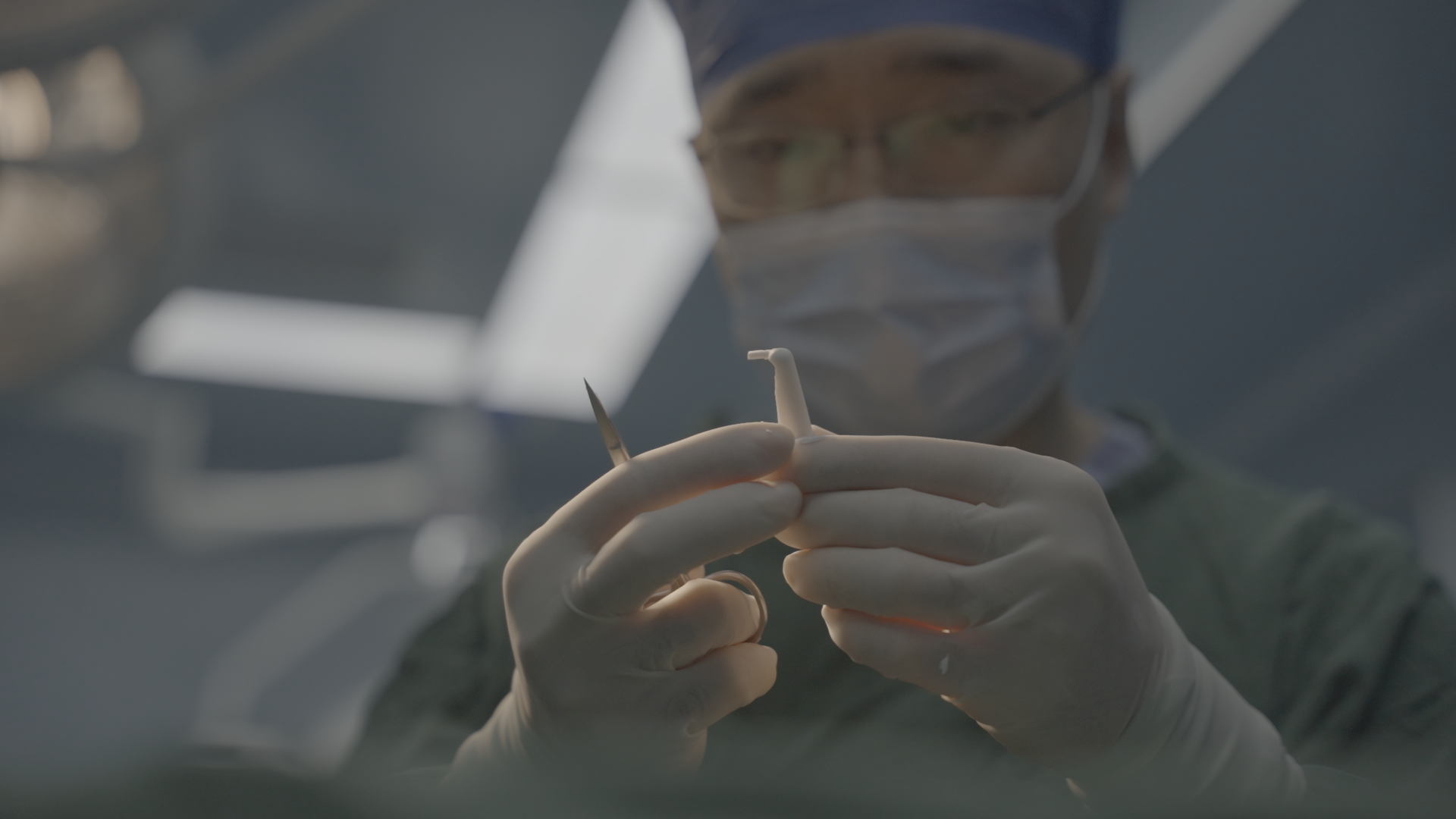 整体仿生“三角支架”搭建技术:独创的L形仿生支架水平固定脚模拟鼻中隔软骨形态,整体包裹并与鼻中隔软骨结合,再通过四角力学固定缝合。这一结构重建技术构成了鼻部的“核心骨架”,确保了术后鼻部形态的长效稳固、不移位、不变形,尤其保障了鼻尖的自然挺翘。