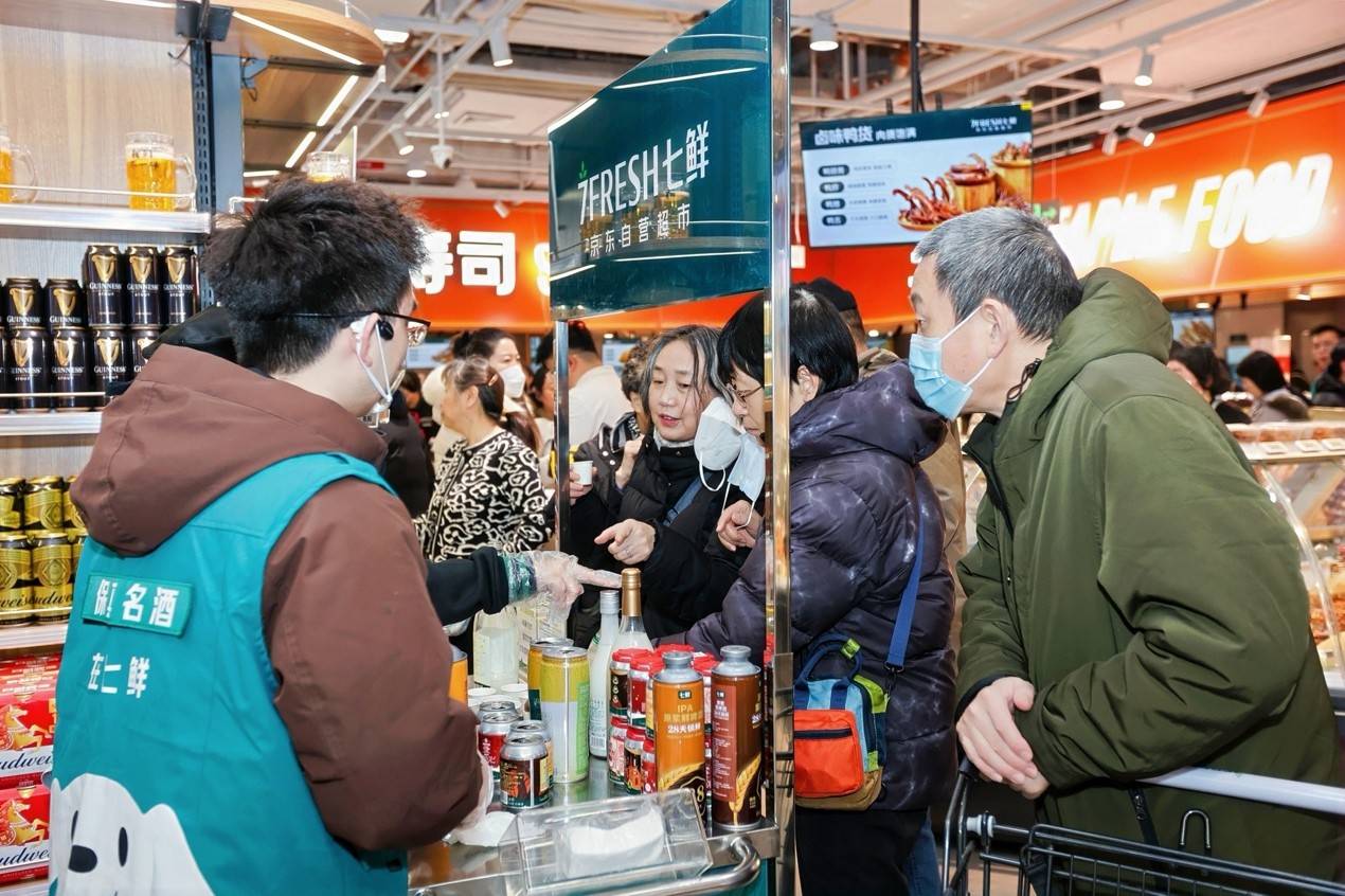 临近春节,囤点好酒来过年成为不少消费者的重点需求,店内特有的“七鲜酒馆”专区尤为吸睛。500ml飞天53度茅台酒,每瓶仅需1699元,引发市民极大购买热情。全球直采的七鲜甄选赤霞珠干红葡萄酒,价格低至29.9元/瓶,让市民用1-2杯奶茶钱,就能解锁原瓶进口的仪式感;京鲜舫6号白酒以“酒厂直供”模式简化供应链,清香型采用纯粮固态发酵工艺,酒体纯净清雅;浓香型酒体醇厚、粮香突出,两款双支装礼盒仅需299元,实现“好酒不贵,心意纯粹”。
