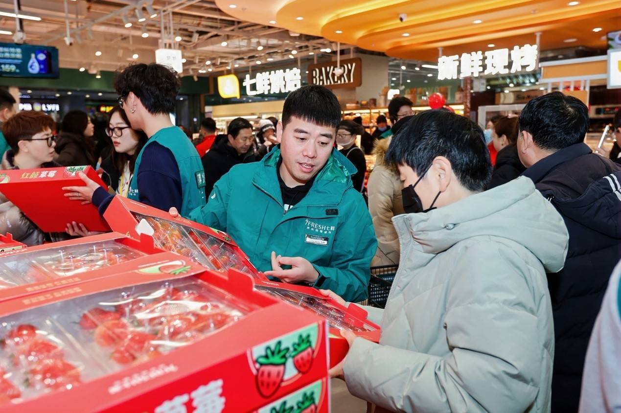 水果区,以红颜草莓为代表的“24小时果”,24小时内从枝头采摘到七鲜货架,成为消费者购物车里的“常客”。更有海外直采的新西兰车厘子、新鲜到店得正宗黑刺榴莲、脆甜爽口云南高山巨无霸蓝莓,让市民轻松解锁冬日“水果自由”。