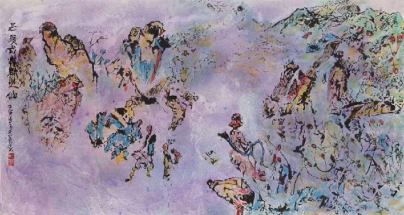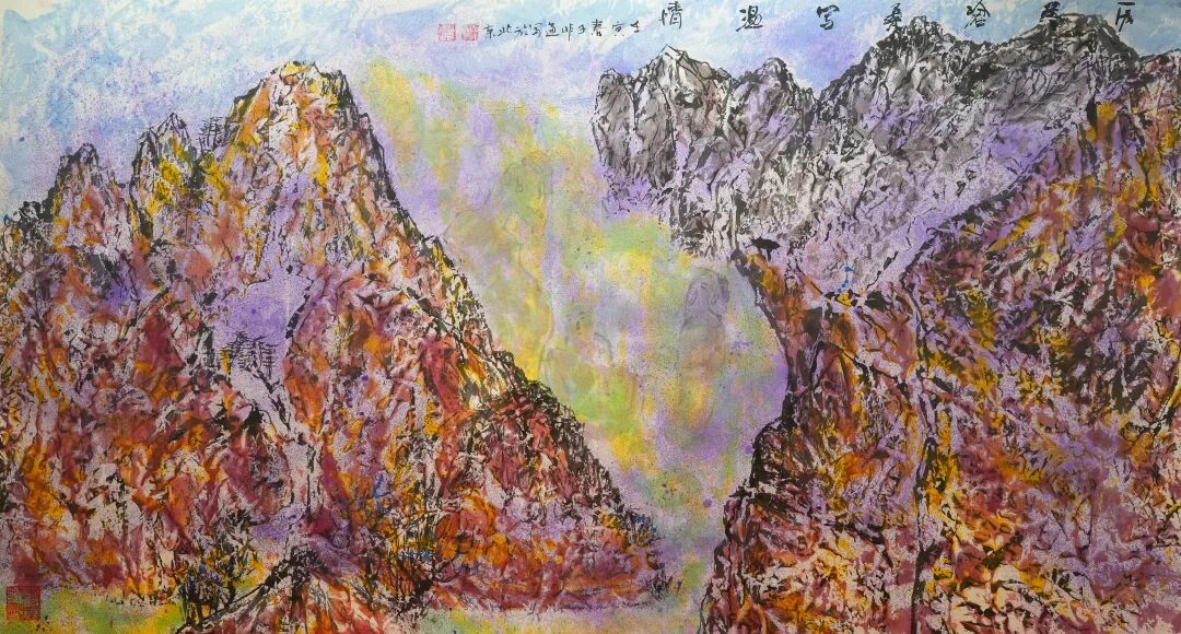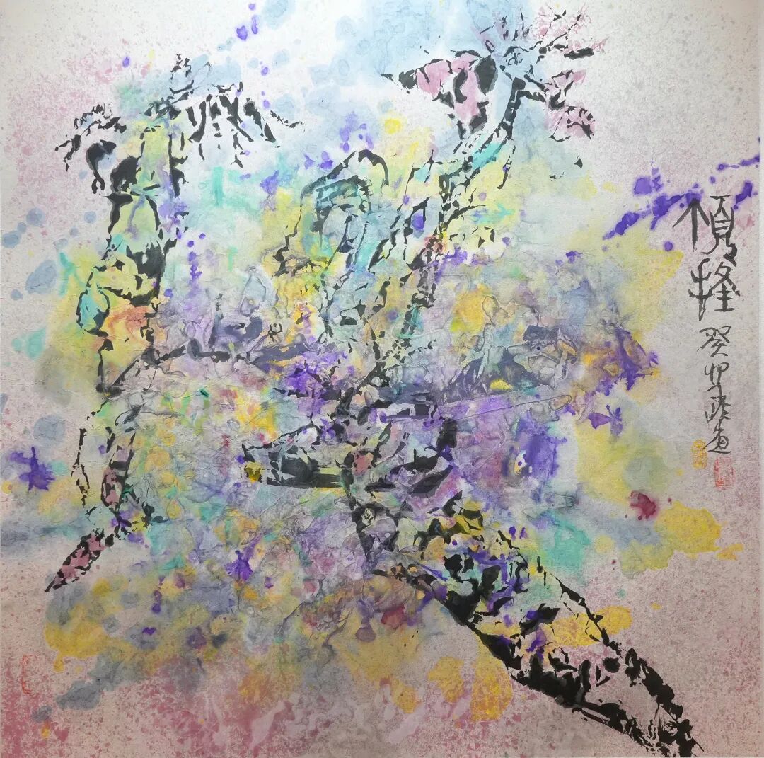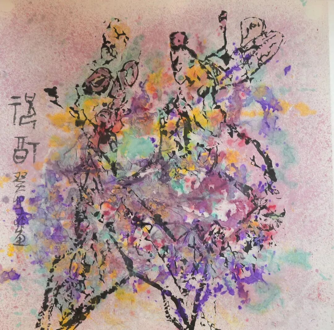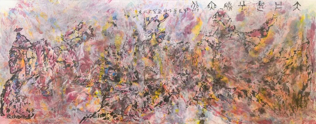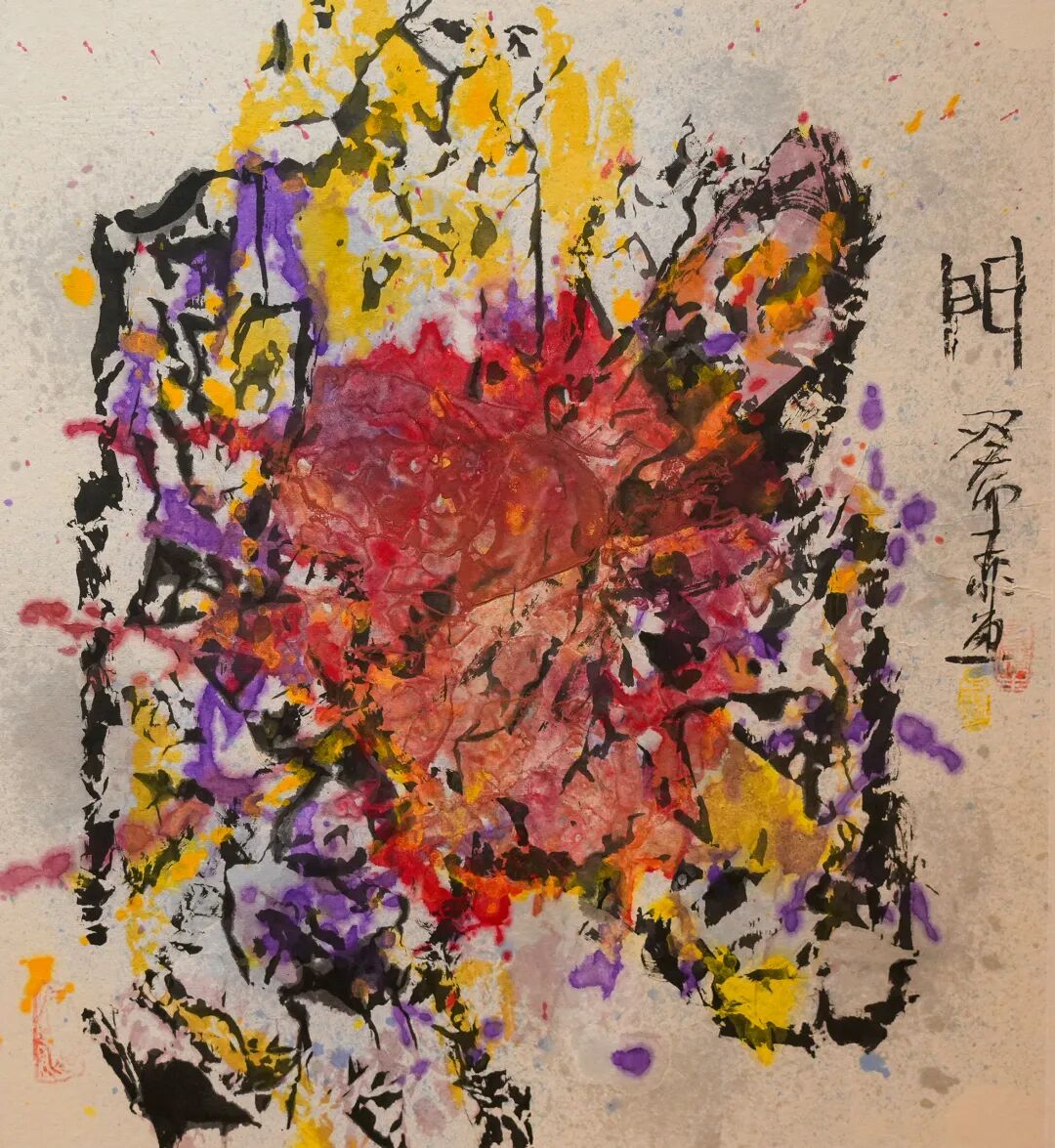 廖清生先生在创作中融合文学、哲学、宗教等多元文化元素,形成“重视生灵、窥视人心、化外宇宙”的独特艺术视角。其突破性在于打破了传统国画的诸多创作禁忌:山川河流可倒置旱现,树木山石能随意叠加,动物花鸟的布局突破时空限制,云雾水流的形态亦随意念自然变形。这种“杂乱有章、遵循无极、以无化无”的创作宗旨,使得不同时空的意念、情感与思想得以在同一画面中交织碰撞--无论是历史记忆、当下感悟还是未来哲思,皆可通过“意念同同框”的艺术手法实现跨维度对话。