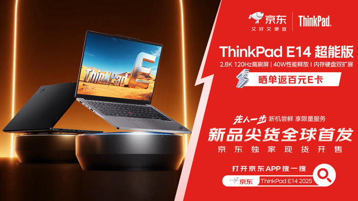 一直以来,京东都是大牌3C数码新品首发的核心阵地。为进一步满足消费者新品国补换新需求,给予用户更多“抢鲜”权益,京东携手3C数码厂商、运营商及回收企业,发起“京东先人一步加速换新计划”——消费者在京东下单3C数码新品可享国家补贴叠加以旧换新补贴、京补合约等多重补贴福利。同时,在新品服务权益加码的基础上,消费者还可享受“权益随心选”这一全新购新方式,获得更加自由灵活的换机体验。目前,ThinkPad E14 2025超能版已在京东先人一步首发上线,期待装备焕新的朋友赶紧来抢鲜体验吧。