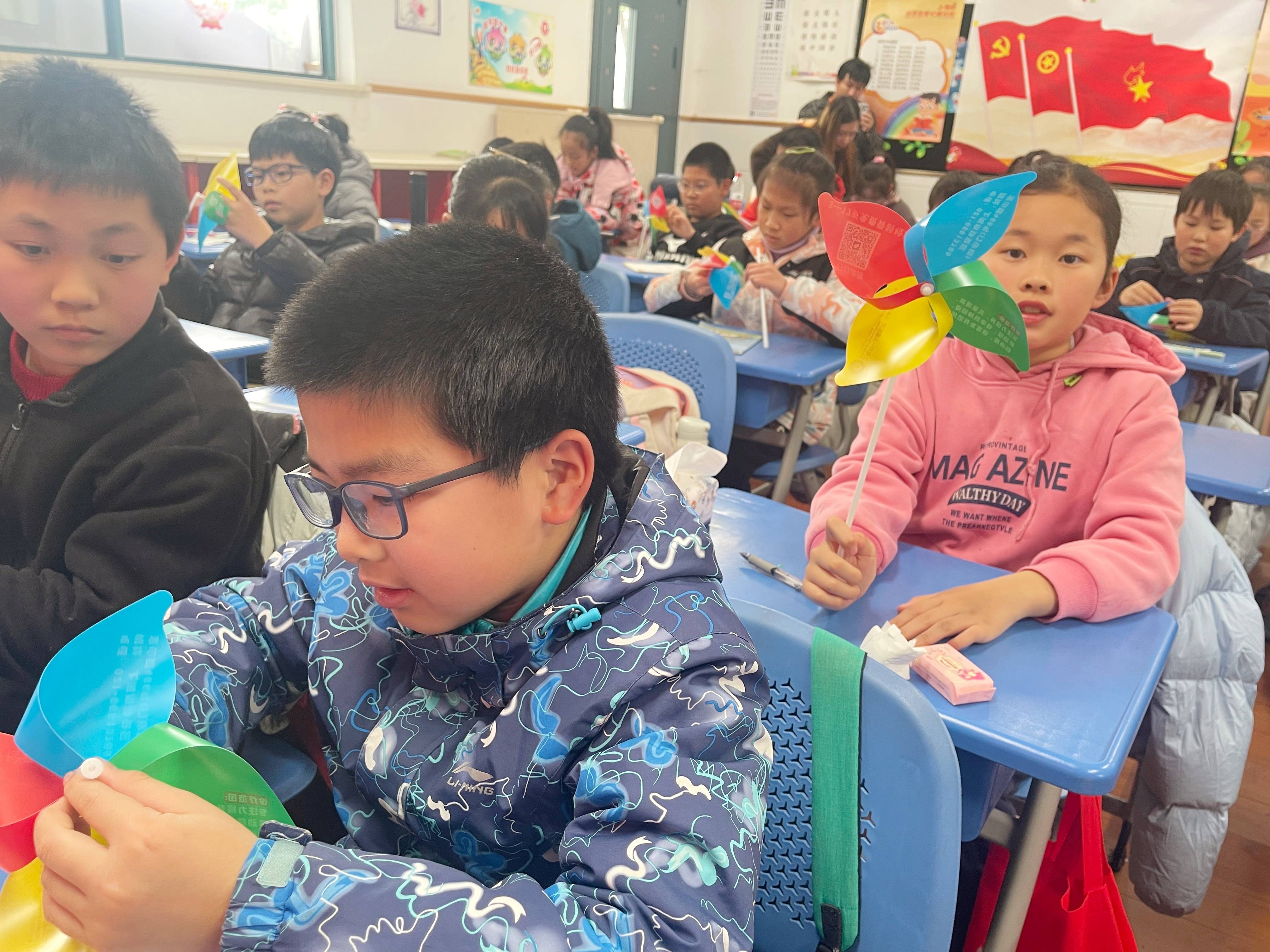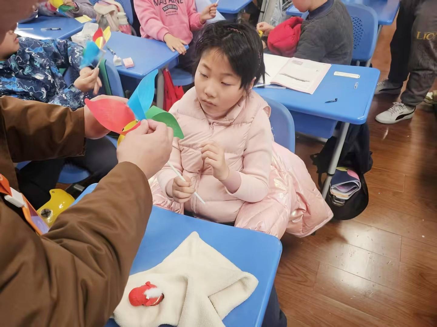 随后进行的小风车制作环节,同样注重动手与动脑的结合。从折叠纸张、固定中心轴到调试叶片角度,孩子们一步步跟随指导,完成属于自己的小风车。制作过程中需要细心观察与耐心调整,这自然而然地引导孩子们放慢节奏、投入其中,在轻松的氛围里培养了持续关注细节的能力。