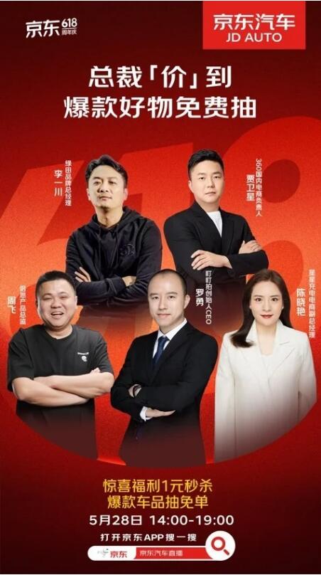 5月27日至5月28日,亿力、得力、惠尔顿、倍思、星星充电、360、绿田、盯盯拍等八大品牌高管将现身京东汽车采销直播间,携多重超值福利助力京东汽车618开启。在京东汽车采销直播间,各品牌高管将现场为车主发红包,同时一元秒杀、汽车用品免费抽、爆款直降等福利也将轮番上线,以最大优惠力度让利消费者,助力广大车主用车养车省钱又省心。