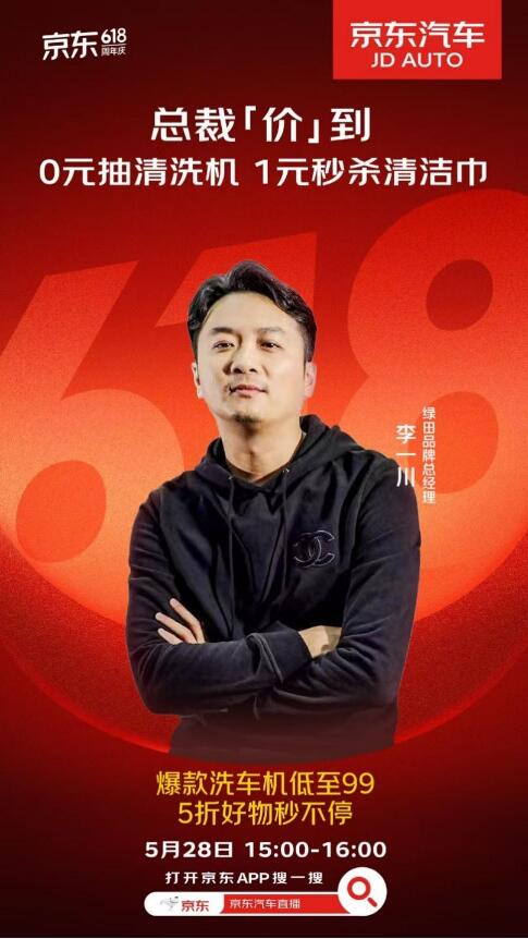 5月28日,绿田品牌总经理李一川现身京东汽车采销直播间,携众多爆款好物及专属福利为京东汽车618站台。从洗车机到吸尘器,李一川亲自拆解绿田爆款产品,超值折扣、骨折价秒杀等福利点燃消费者热情,55万观众涌入直播间,“上链接”“已加购”等弹幕疯狂刷屏,单场直播成交额创7日内新高。