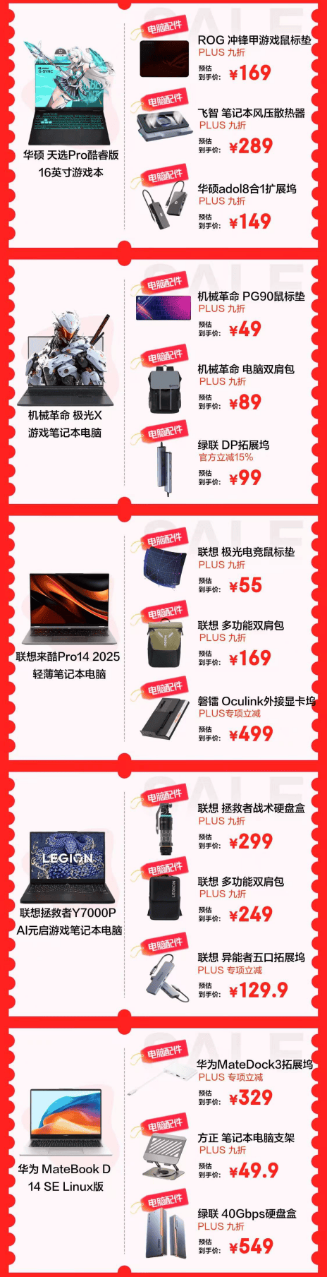 精准操作电脑少不了一款丝滑鼠标垫,ROG冲锋甲游戏鼠标垫防水防油防灰尘,三重保护让鼠标滑行自如,PLUS会员享9折优惠;还有超高性价比的机械革命 PG90鼠标垫到手价仅49元,联想极光电竞鼠标垫仅55元;电脑外接U盘、投屏等场景扩展坞也是刚需,绿联 DP拓展坞官方立减15%,到手仅99元,还有华硕adol 8合1扩展坞等供你挑选;此外,活动期间电脑双肩包、散热器、硬盘盒、电脑支架也可享受PLUS会员9折等特惠,抓紧抢购让你省上加省。