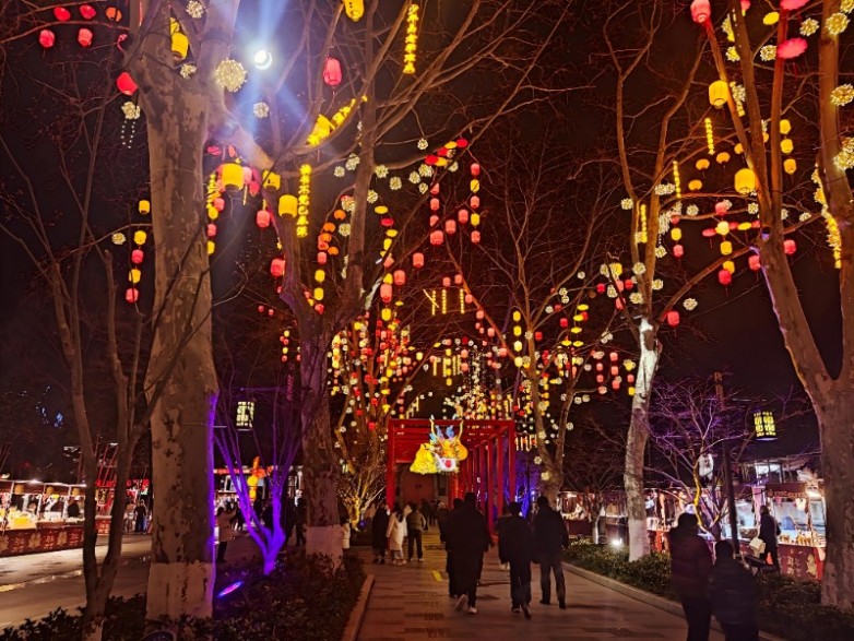 夜幕降临,大家三五成群,漫步在灯会现场,一饱眼福。除了静态灯组,景区内轮番登场的表演更让大家赞叹不已。身着霓裳羽衣的舞者凌空而降,重现“天女散花”的仙侠奇观;金光璀璨的“飞天凤凰”在空中翱翔,点亮栖霞山的夜空。扇舞呈祥、舞龙舞狮、鱼灯巡游,引得大家纷纷驻足观赏、拍照留念。