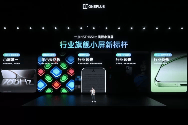 一加 15T 搭载行业唯一的 6.32 英寸 165Hz 旗舰小直屏,首次将超流畅的 165Hz 超高刷体验带给小屏旗舰。该屏幕采用全新旗舰发光材料,在色准、通透度、亮度均一性以及色偏控制上均做到行业领先。同时,一加 15T 还启用全球唯二、中国手机厂商第一条自研「屏幕科学产线」,每一块一加 15T 屏幕出厂前都会经过二次校准,全方位精准把控屏幕素质,为用户带来通透、自然、准确的色彩表现。此外,一加 15T 还突破低亮度下电流不稳定、显示色彩失准的行业难题,带来全场景「真硬件 1nit 暗夜显示」,即使是深夜微光环境,均能确保屏幕画面通透自然、舒适不刺眼。